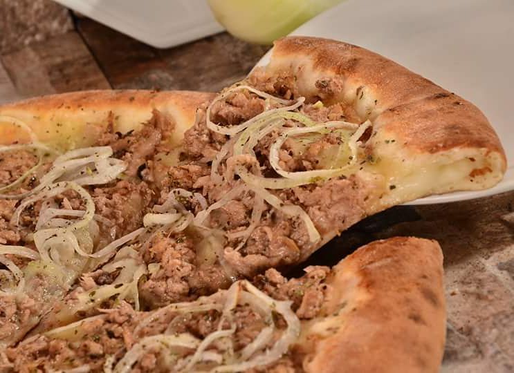 (carne de sol na manteiga da terra, cebola, mozarela e requeijão)